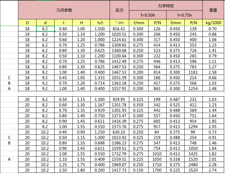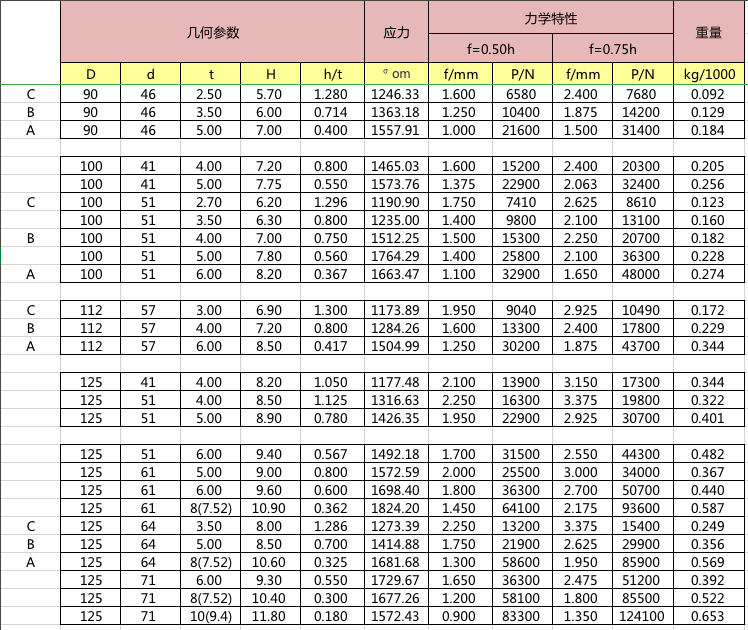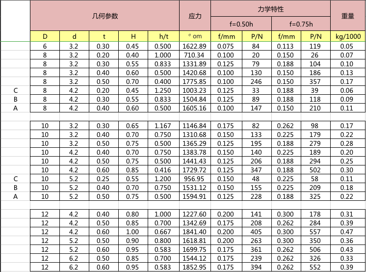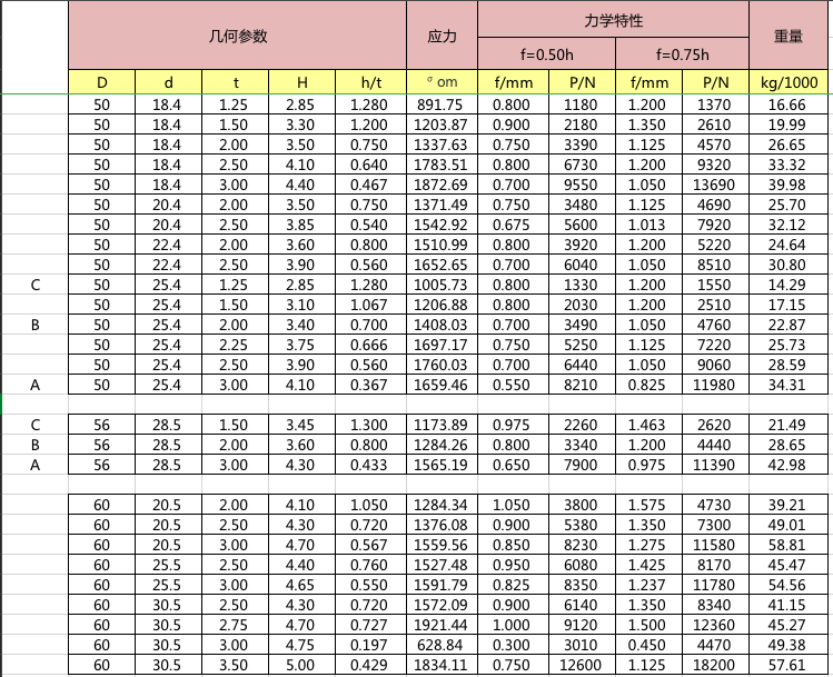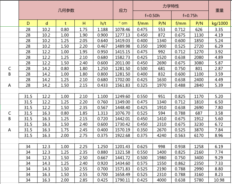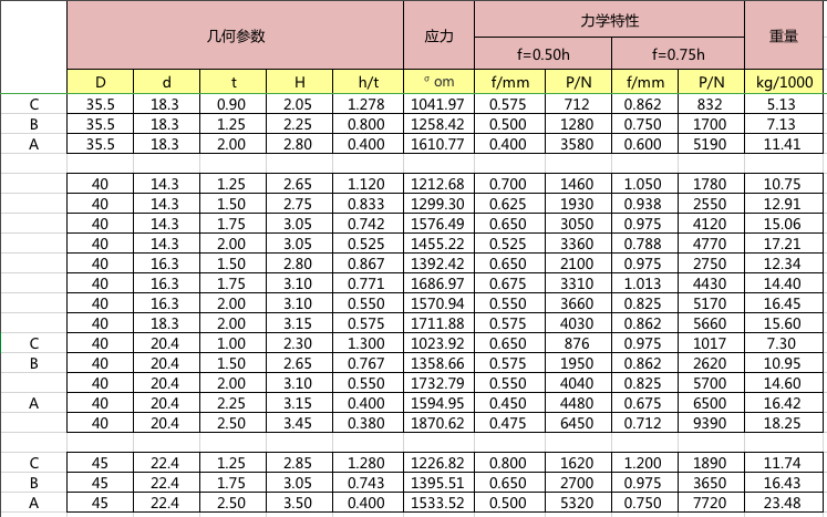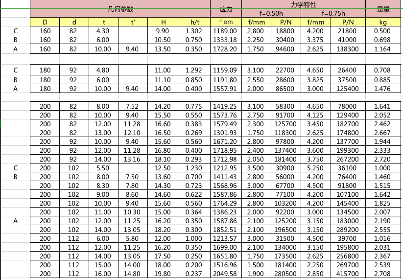 碟簧參數(shù)表