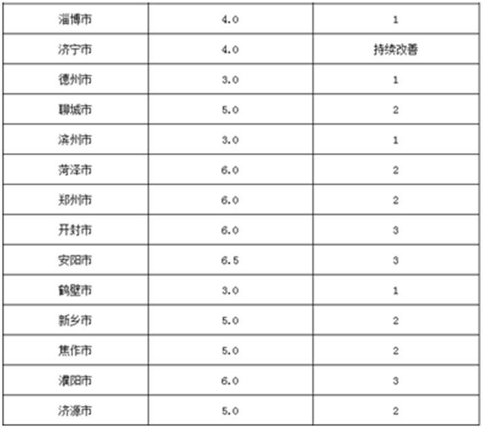 18.加強揚塵綜合治理。嚴格降塵管控,各城市平均降塵量不得高于9噸/月·平方公里。鼓勵各城市不斷加嚴降塵量控制指標,實施網格化降塵量監測考核。山西省太原、陽泉市,山東省聊城市等要全面加大揚塵綜合治理力度;河北省廊坊市,山東省德州、淄博市要堅決遏制降塵量反彈勢頭。
