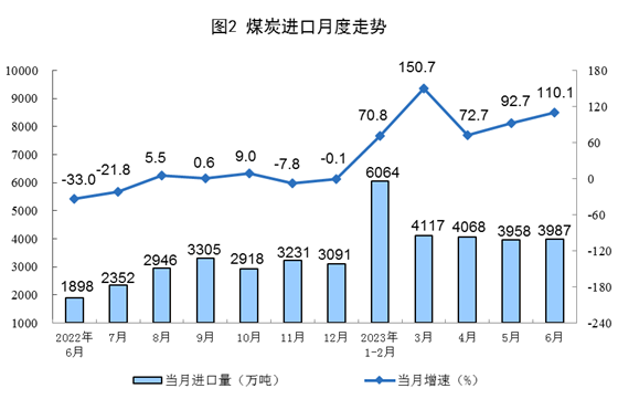 原煤生產穩定增長,進口高位增長。上半年,生產原煤23.0億噸,同比增長4.4%。進口煤炭2.2億噸,同比增長93.0%。6月份,生產原煤3.9億噸,同比增長2.5%。