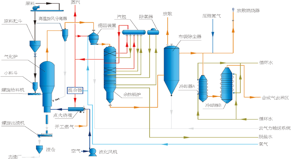 生物質氣化技術是以生物質(秸稈、畜禽糞污等農林廢棄物)作為氣化原料,通過純氧氣化,經提溫、余熱回收、除塵、脫硫等工藝處理,產生合成氣,可作為制綠色甲醇的原料氣。目前主要應用于碳基資源(生物質、RDF、糞污等)領域。